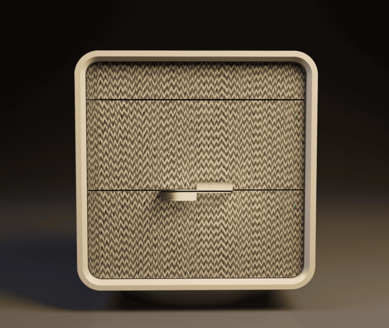 Elegant and modern side table featuring hybrid veneer finish, complemented by a sleek frame and metallic handle. Designed to enhance interiors with style and functionality.