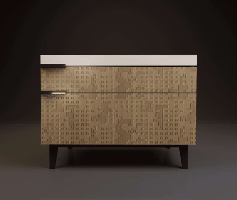 This stylish side table combines modern aesthetics with functionality. Its embossed natural veneer adds a unique texture, while the smooth frame and metallic handle provide a sophisticated touch. Its durable construction incorporates premium materials, ensuring both stability and style. Ideal for contemporary spaces, it serves as a versatile accent piece, perfect for bed side.